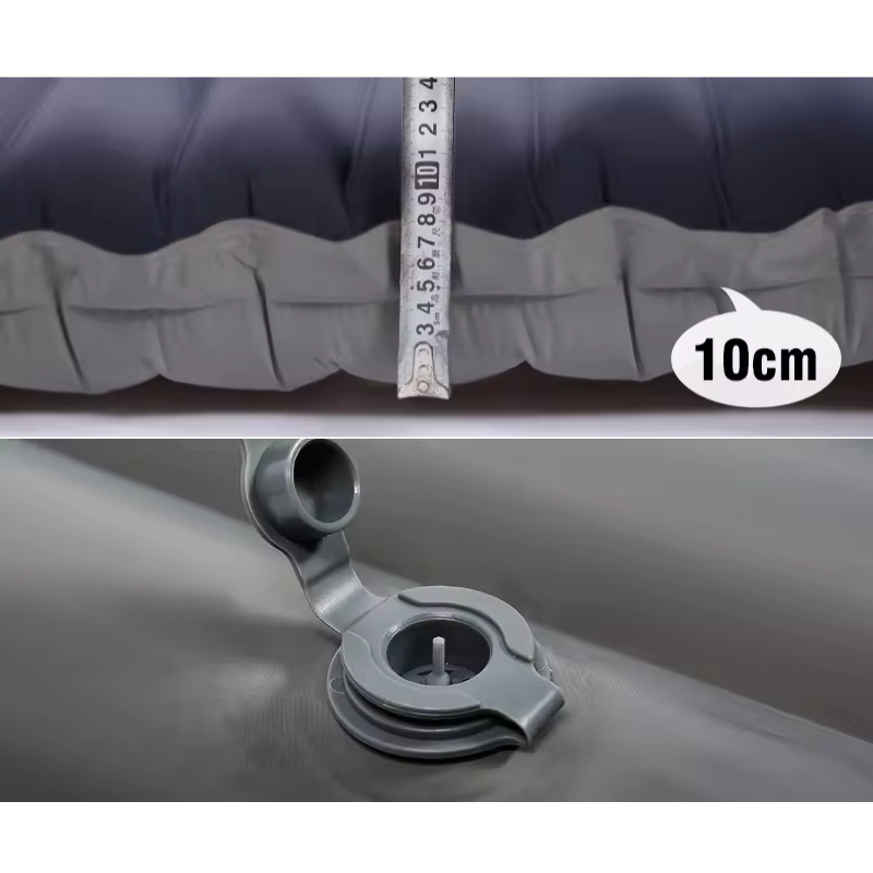 Når det er oppblåst, er liggeunderlaget 10 cm tykt, og puten har en høyde på 16 cm for ekstra støtte til nakke og skuldre.