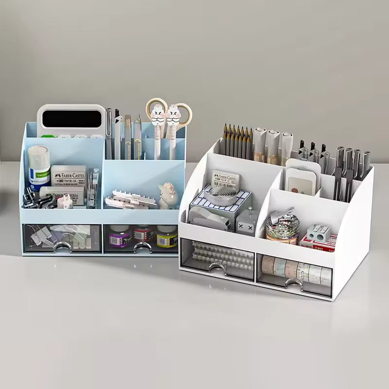 Robust boks med uttrekkbar skuff — perfekt for å samle sminke, kontorrekvisita eller små-husholdnings-ting på ett sted. Enkel å plassere både på benk og i hylle.